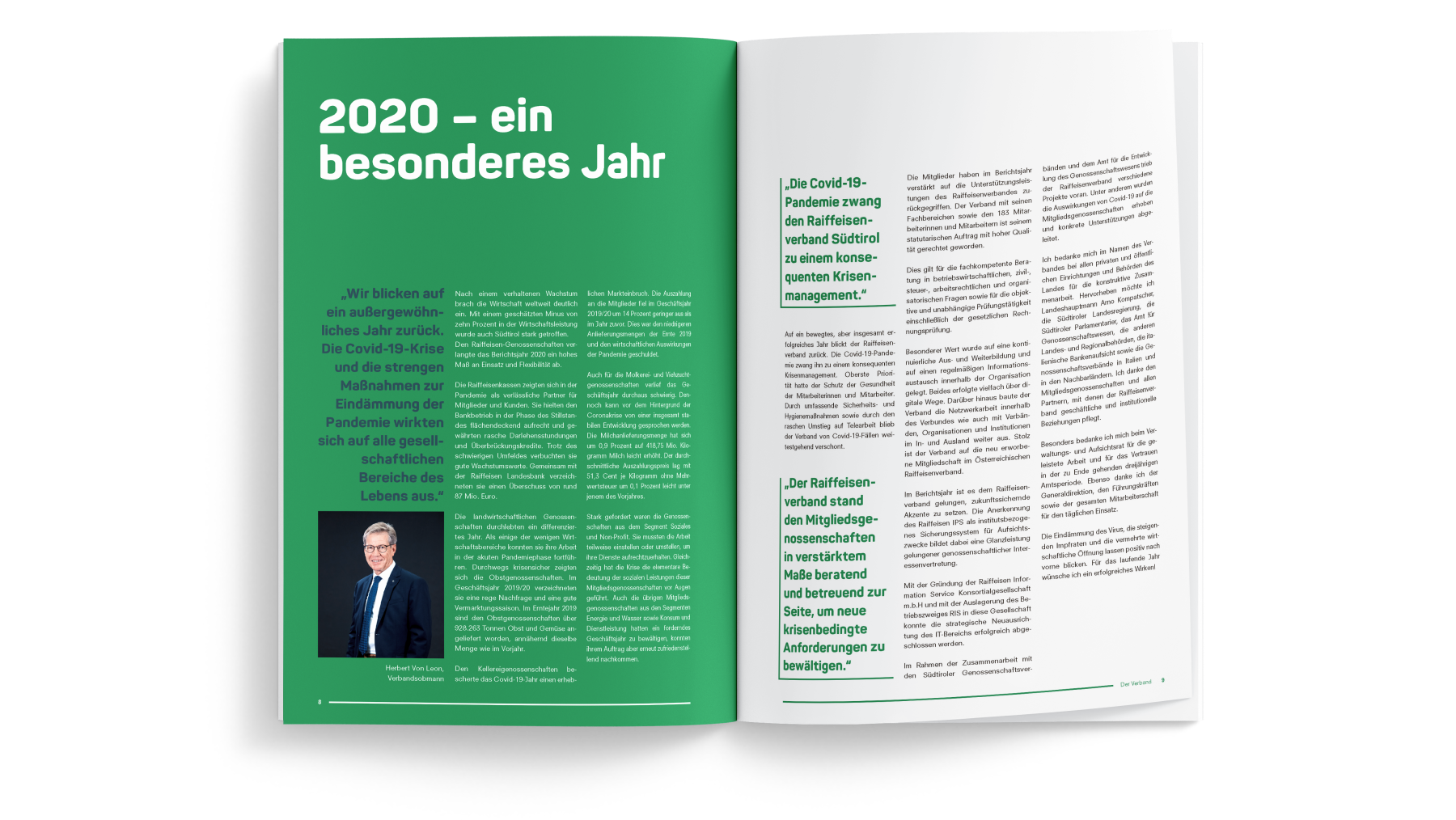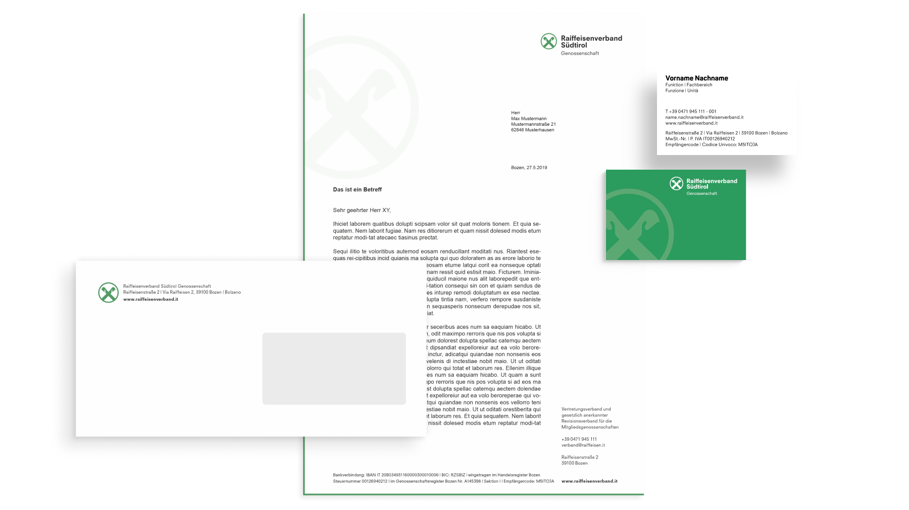 Um den Raiffeisenverband Südtirol als Verband in den Köpfen der Anspruchsgruppen zu verankern und in dieser Funktion als Lieferant exzellenter, vielfältiger Dienstleistungen für seine Mitglieder zu positionieren, muss sich der Auftritt klar von den Marktauftritten der Mitgliedsgenossenschaften abgrenzen, ohne dabei die Wiedererkennung und Verbundenheit mit diesen zu negieren.